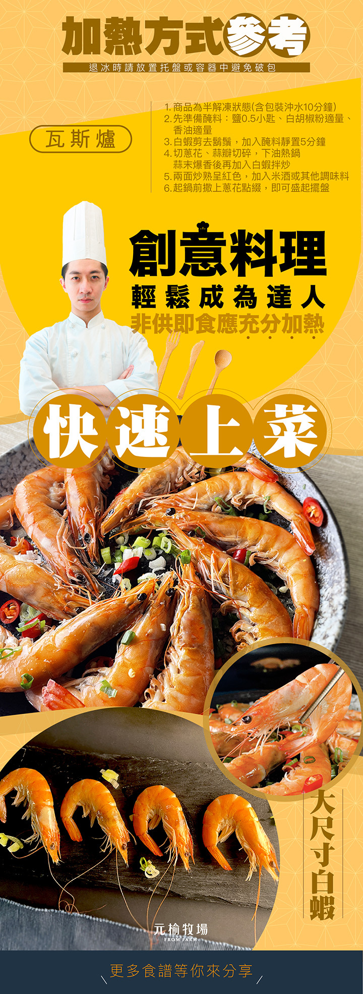 🔥蝦子解凍提醒:蝦子解凍請隔著包裝袋沖水10分鐘即可,不要讓蝦肉直接沖泡水中喔!也不用前一天放冷藏或是室溫退冰,時間一長會影響到蝦子的鮮度與品質!