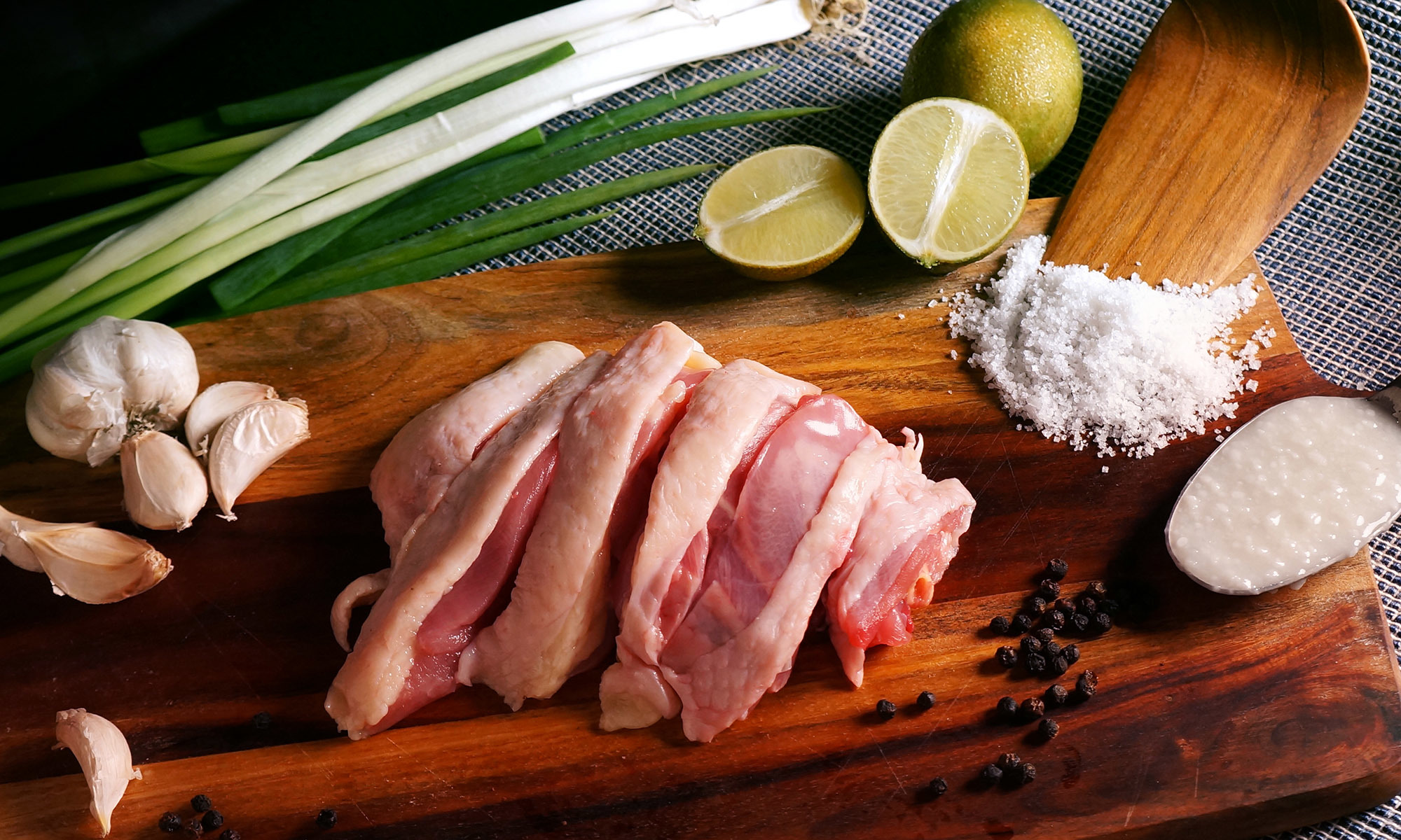 《鹽麴香煎雞腿》推薦你用元榆牧場自然放牧的黑羽土雞去骨雞腿,當然也可以試試看雞翅入烤箱料理:)