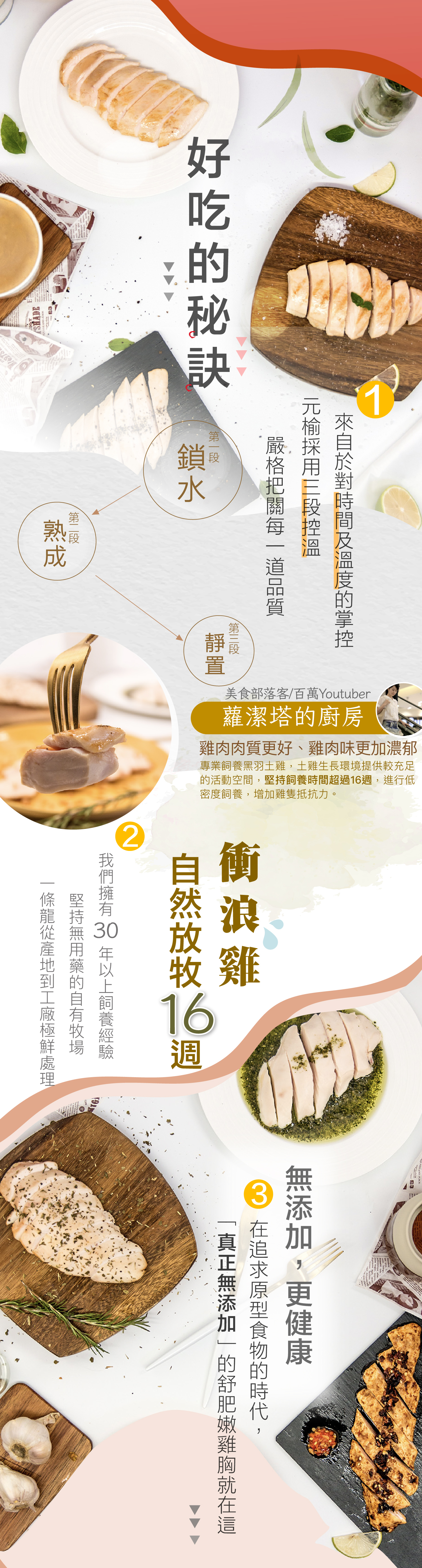✓ 保證新鮮衛生:全程低溫清洗分切,並真空包裝後急速冷凍,有效降低細菌滋生,再透過低溫宅配,確保雞肉品質