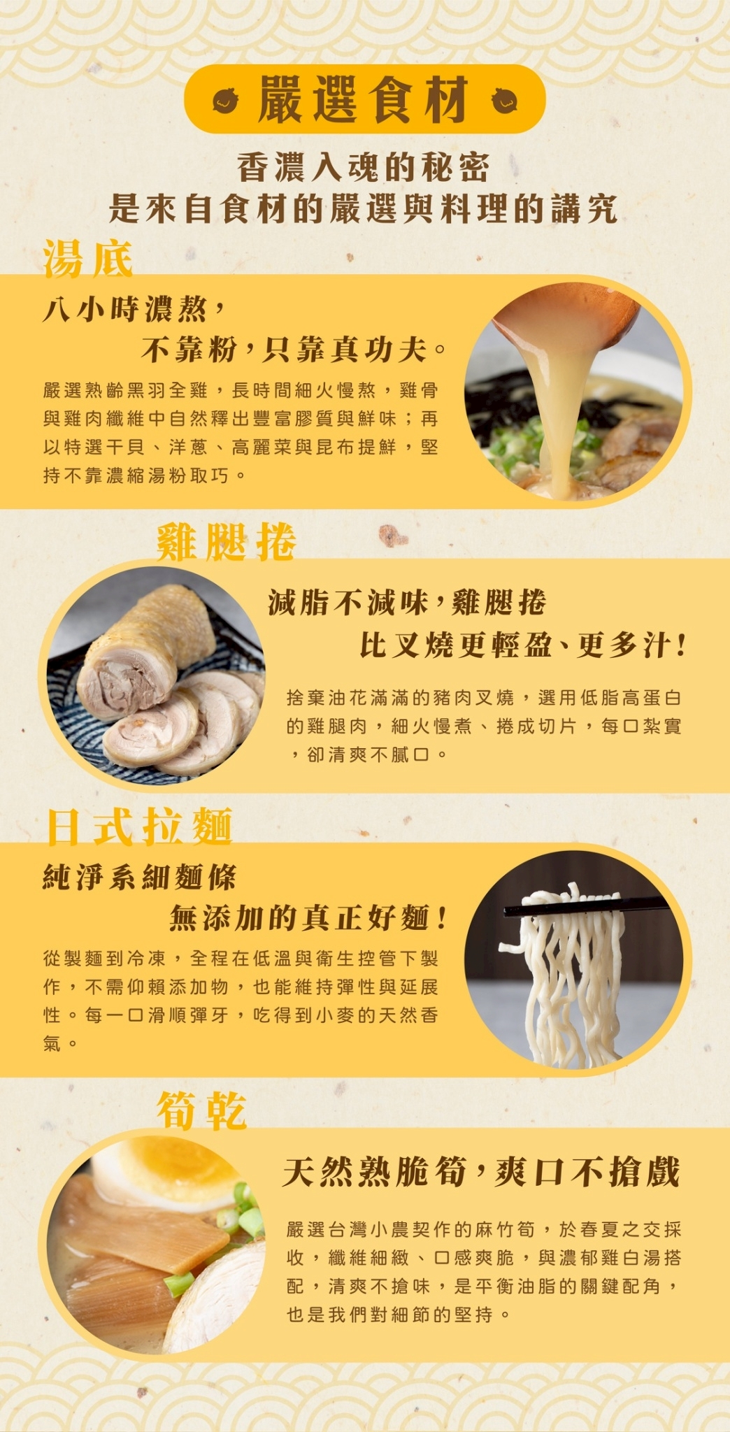 ✓ 湯頭使用神農獎衝浪雞、特選干貝與蔬菜長時間細火慢熬,自然釋出豐富膠質與鮮味